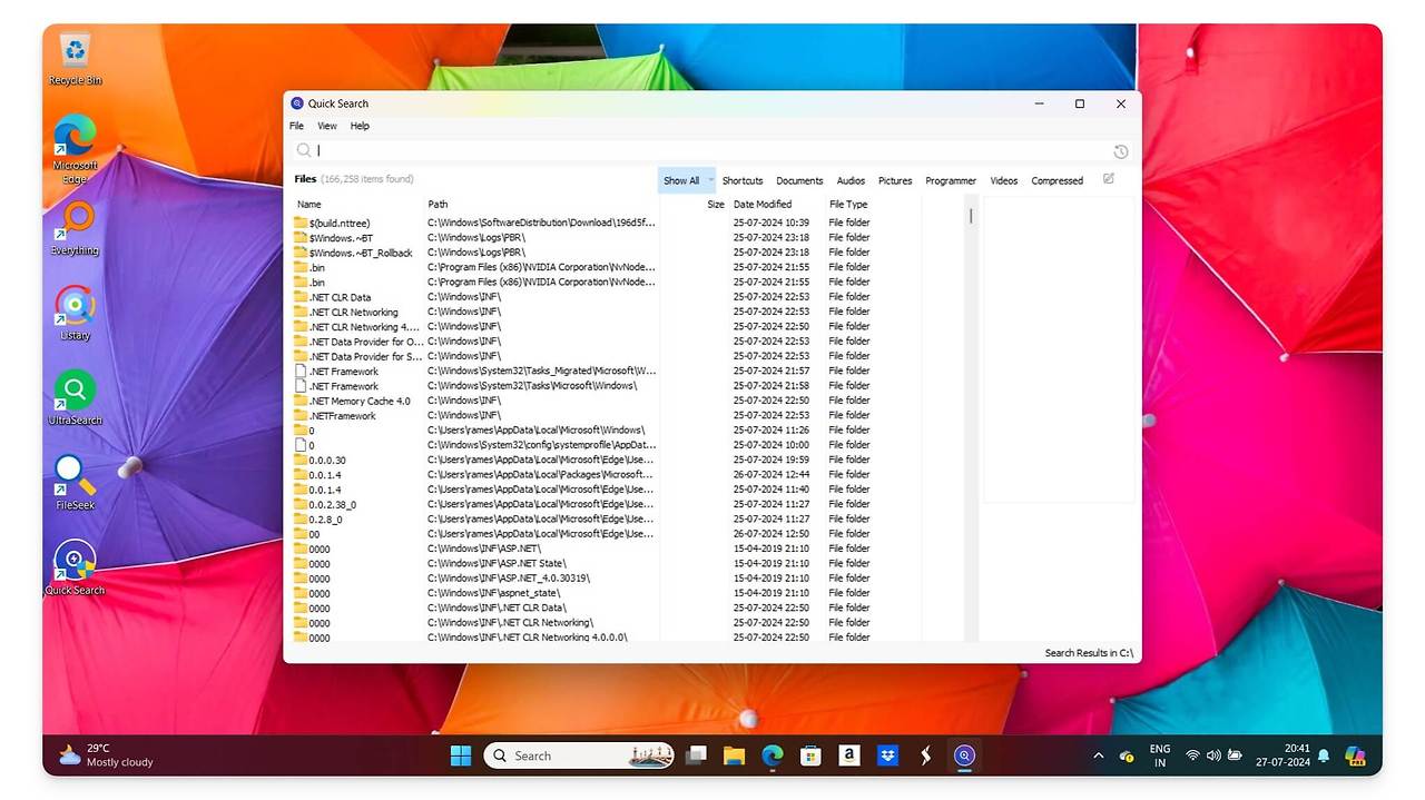 단순함이 여전히 우선순위이고 간단한 도구를 찾고 있다면 Windows용 Quick Search를 확인해 보세요. 사용하기 쉬운 인터페이스를 제공하며 찾고 있는 파일을 즉시 찾을 수 있습니다. 사용자 친화적인 환경을 제공합니다. 오른쪽에서 검색 결과를 미리 볼 수도 있습니다.