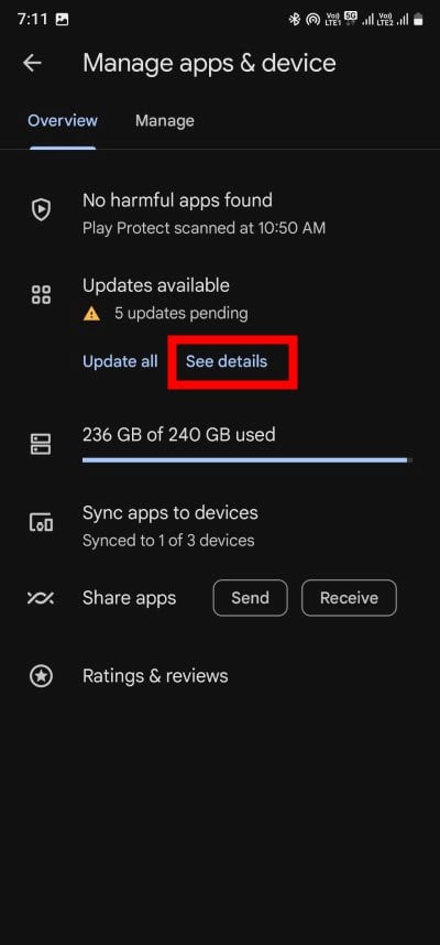 - 새로운 업데이트가 있는 경우, 사용 가능한 업데이트 섹션 아래에 새로운 업데이트가 표시됩니다. 세부 정보 보기를 클릭합니다 .