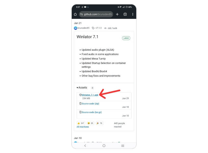 - brunodev86의 GitHub 저장소 에서 Winlator APK 파일을 다운로드하세요 .
