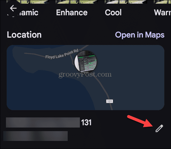 Android 휴대폰에서 사진을 열고 위로 스와이프하면 GPS 좌표 와 기타 데이터 외에도 지도가 표시되어 위치 정보가 포함된 메타데이터를 볼 수 있습니다.