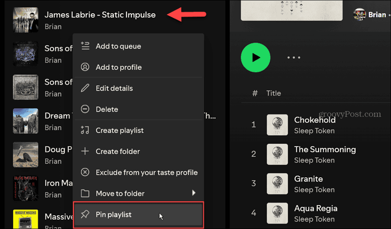 *참조한 원본 글 https://www.groovypost.com/howto/pin-playlists-spotify/