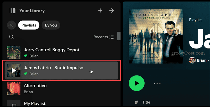 스포티파이 데스크톱 앱을 사용하든 컴퓨터에서 웹 버전을 사용하든, 데스크톱에서 플레이리스트 등을 고정할 수 있습니다. 이 예에서는 플레이리스트를 고정하지만 모바일에서처럼 호환되는 항목을 고정할 수 있습니다.