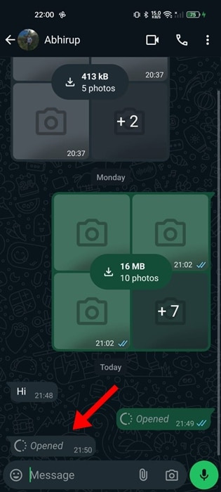 3. 이제 View Once 미디어 파일이 포함된 채팅을 엽니다. View Once 사진 또는 비디오가 일반 미디어 파일로 표시됩니다.