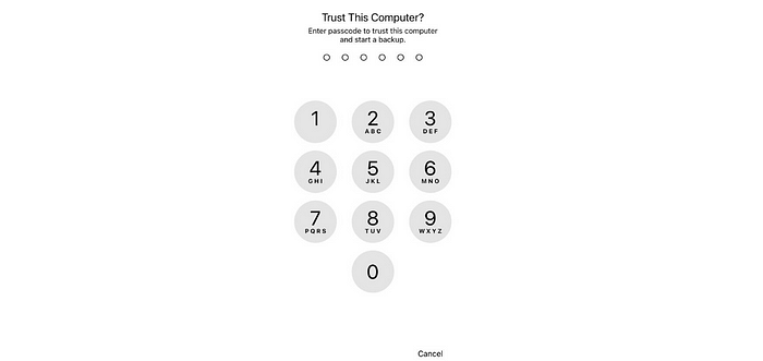 iPhone에서 신뢰를 클릭하여 연결을 허용하고 iPhone 암호를 입력하세요.