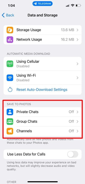 안드로이드와 마찬가지로 아이폰용 Telegram 앱도 파일을 수동으로 다운로드할 수 있습니다. 파일을 수동으로 다운로드하고 사진에 저장 기능을 비활성화할 수 있습니다.
