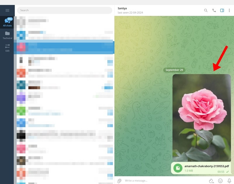 1. Telegram 앱을 실행하고 다운로드하려는 사진이나 비디오가 있는 채팅을 엽니다.