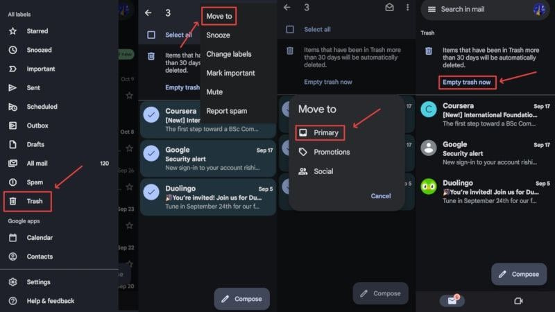 이메일이 휴지통에 있는 동안 버튼을 클릭하면 완전히 복원할 수 있습니다. 안타깝게도 모든 이메일을 백업하지 않는 한 그 반대의 방법은 불가능합니다. 많은 사람들이 그렇게 하지 않습니다. 그럼에도 불구하고 스마트폰이나 데스크톱에서 이메일을 삭제하는 방법은 다음과 같습니다.