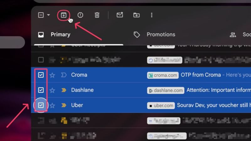 - 보관하려는 이메일 옆에 있는 확인란을 선택하세요 .