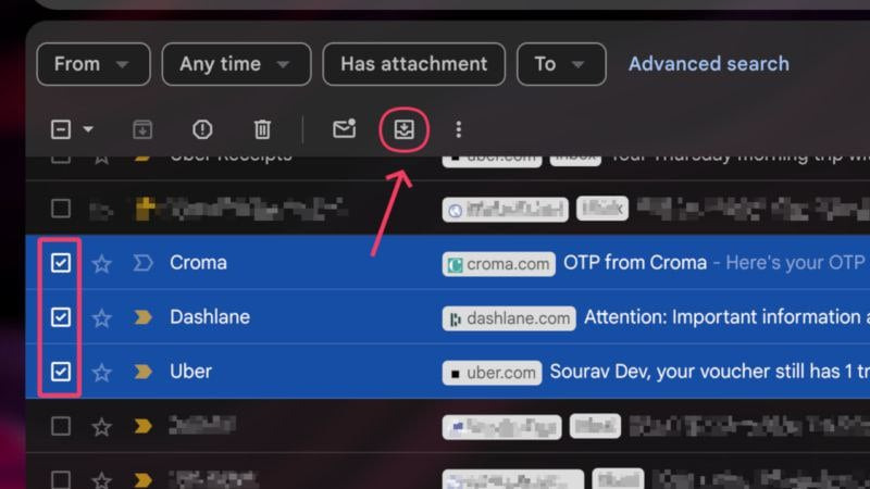 - 삭제하려는 이메일 옆에 있는 확인란을 선택하세요 .