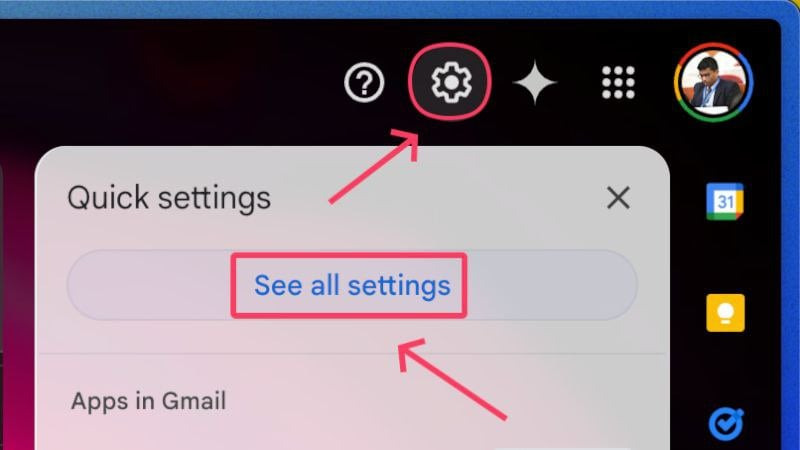 - 상단 도구 모음에서 설정 아이콘을 선택 하고 모든 설정 보기 를 클릭합니다.