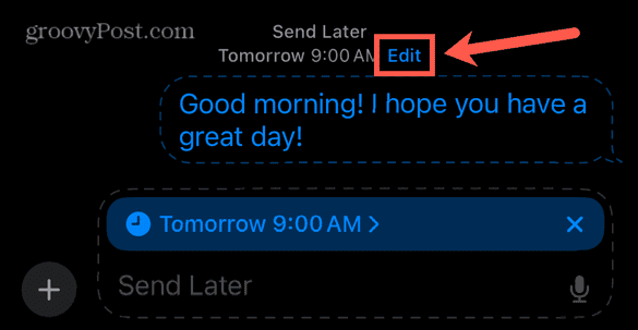 - iPhone에서 메시지를 보내는 시간을 변경하려면 '시간 편집'을 탭하세요.