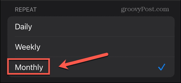 - 반복 에서 매월을 선택하면 아이폰에서 메시지를 보낸 후 자동화를 삭제하는 것을 기억하는 가장 긴 시간을 얻을 수 있습니다.