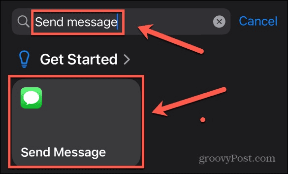 - 검색 필드에 '메시지 보내기'를 입력하고 결과에서 '메시지 보내기'를 선택합니다.