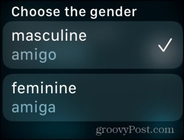 때로는 번역에 여러 의미가 있는 단어가 있을 수 있습니다. 필사본 이나 번역에 잘못된 옵션이 포함된 경우 대체 의미를 선택할 수 있는 옵션이 제공될 수 있습니다. 이 경우 문제의 단어가 강조 표시되어 단어를 선택하고 대체 단어를 선택할 수 있습니다. 이는 성별에 따라 단어의 철자가 다른 경우에도 발생할 수 있으므로 적절한 성별을 선택할 수 있습니다.