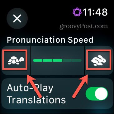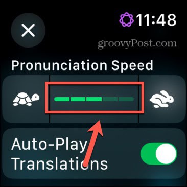 Translate 앱이 번역문을 소리 내어 읽을 때, 특히 아직 능숙하지 않지만 배우려고 하는 언어인 경우, 때로는 약간 빠르게 느껴질 수 있습니다. 그렇다면 음성 번역문의 재생 속도를 늦춰서 단어를 더 느리게 발음할 수 있습니다. 또한 음성 번역문을 더 빨리 해야 한다고 생각되면 속도를 높일 수도 있습니다.