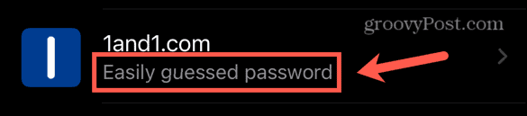 - 일부 계정은 쉽게 추측할 수 있는 비밀번호 를 표시할 수 있습니다. 이러한 비밀번호는 쉽게 해독할 수 있으므로 강력한 비밀번호로 대체해야 합니다. 계정을 탭하고 비밀번호 업데이트를 선택하여 변경합니다.
