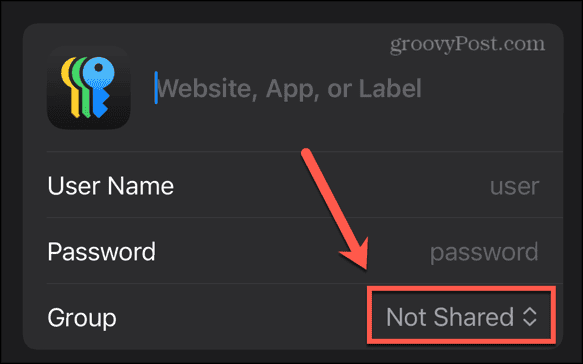 - 공유 그룹에 비밀번호를 추가하려면 그룹 드롭다운을 사용하여 그룹을 선택하세요.