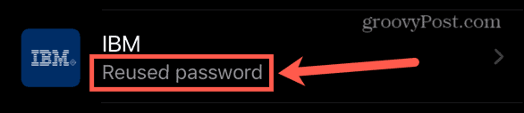 - 일부 계정은 아래에 재사용된 비밀번호를 표시할 수 있습니다. 여러 계정이 동일한 비밀번호를 공유하는 경우 한 계정이 침해되면 다른 계정도 위험에 처하게 됩니다. 계정을 선택하고 비밀번호 변경을 탭하여 각 계정에 대해 고유한 비밀번호를 만들 수 있습니다.