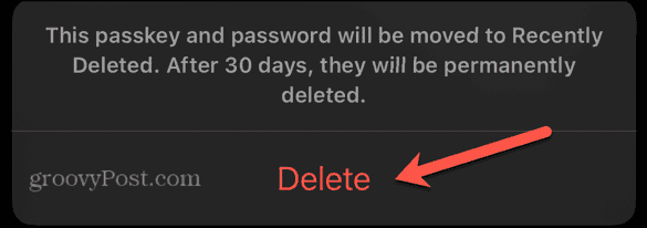 - 패스키는 30일간 '삭제됨' 폴더로 이동된 후 영구적으로 삭제됩니다.