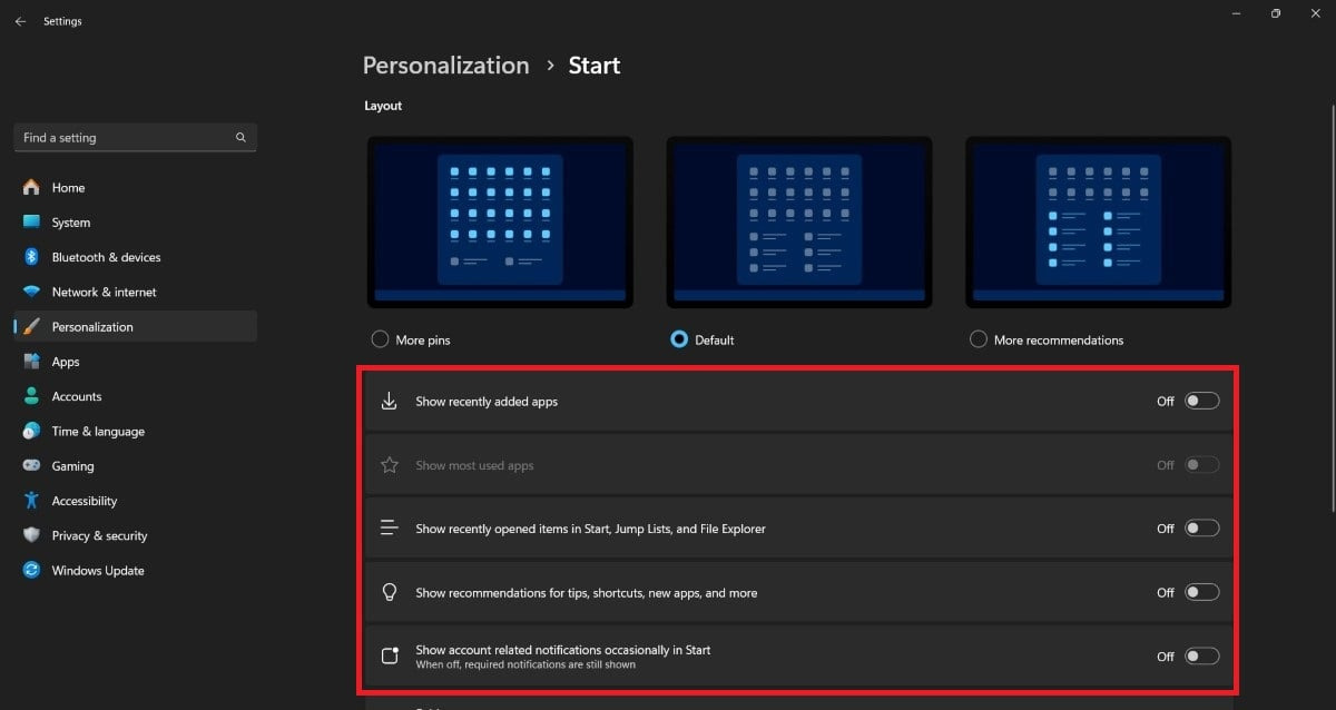 가장 자주 사용하는 파일에 빠르게 액세스할 수 있는 것은 좋습니다. 그러나 시작 메뉴에 다른 사람이 액세스하지 못하게 하려는 중요한 파일이 바로 나타나면 약간 실망스러울 수 있습니다. 이것이 위의 방법이 Windows 11에서 권장 섹션을 제거하는 데 도움이 되는 이유입니다.