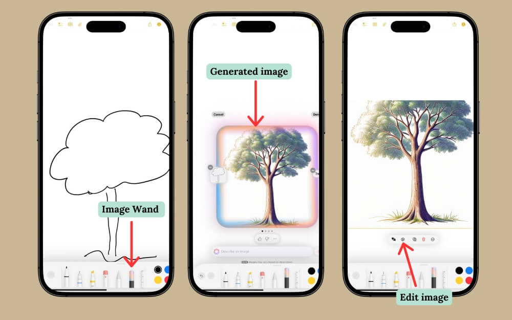 - Image Wand를 사용하면 Notes 앱에 있는 그림을 AI가 생성한 이미지로 변환할 수 있습니다.