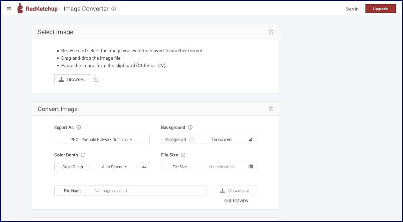 다음은 Redketchup(토마토 소스 아님)입니다. 이미지를 다른 형식으로 변환하는 데 사용할 수 있는 무료 이미지 변환 도구입니다.