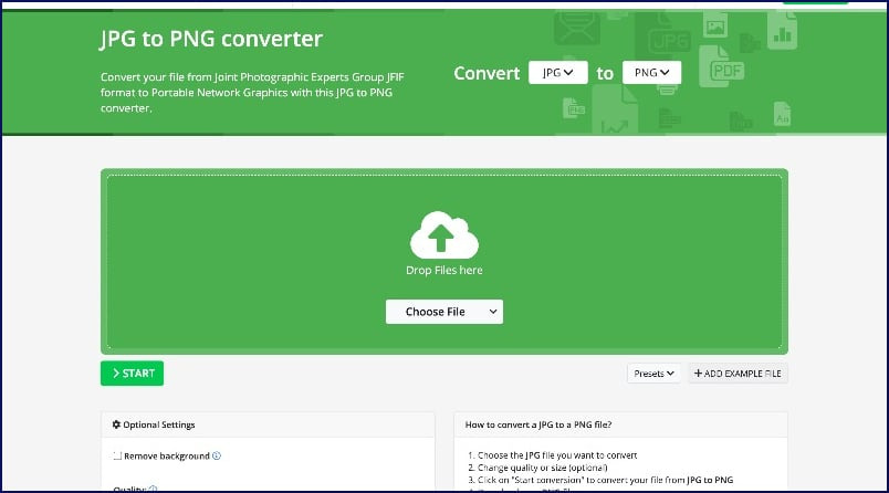Cloud Convert 는 가장 인기 있고 널리 사용되는 고급 이미지 변환 웹사이트입니다. 이 웹사이트는 여러 이미지 형식 업로드와 여러 변환 형식을 지원합니다. 고급 이미지 사용자 지정 옵션과 사용하기 쉬운 인터페이스가 있어 초보자와 전문가에게 이상적입니다.