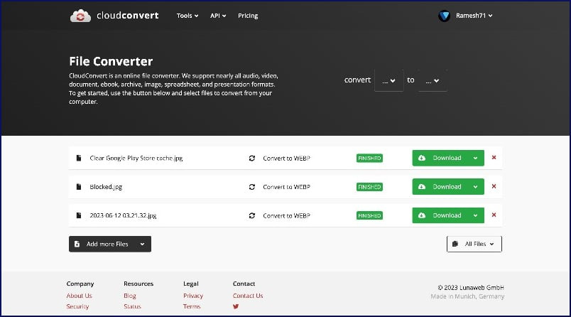 Cloud Convert 는 일괄 이미지를 변환하는 데 도움이 되는 또 다른 인기 있는 이미지 변환 웹사이트입니다. 무료 버전을 사용하면 일괄적으로 10개의 이미지를 무료로 변환할 수 있습니다. 무료로 계정을 만들기 위해 가입하여 한도를 25개로 늘릴 수 있습니다.