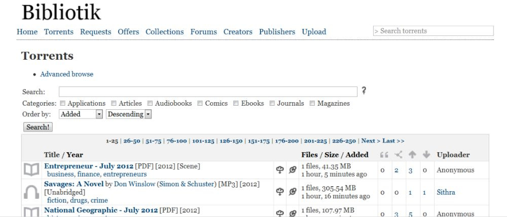 2009년에 시작된 Bibliotik은 단순히 일을 해내는 유명한 전자책 개인 토렌트 추적기 입니다. 300,000개가 넘는 토렌트의 엄청난 콘텐츠 라이브러리와 약 7,000명의 사용자 기반을 갖춘 Biblitok은 많은 공개 토렌트 웹사이트보다 성능이 뛰어납니다.