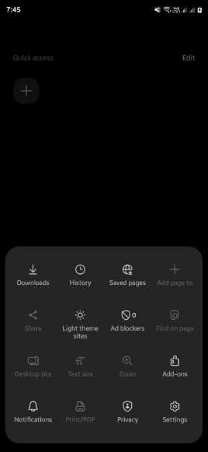 브라우저의 기능 목록을 확장하고 싶다면 확장 프로그램이 매우 유용합니다. 데스크톱의 Google Chrome은 수많은 확장 프로그램을 제공하는 반면, 모바일 버전은 전혀 확장 프로그램을 제공하지 않습니다. 여기서 Samsung Internet Browser가 다시 한 번 점수를 얻습니다. 그렇습니다. Samsung이 제공하는 확장 프로그램 모음은 그렇게 많지 않고, 몇 개뿐이지만, 작업을 완료하기에 충분합니다.