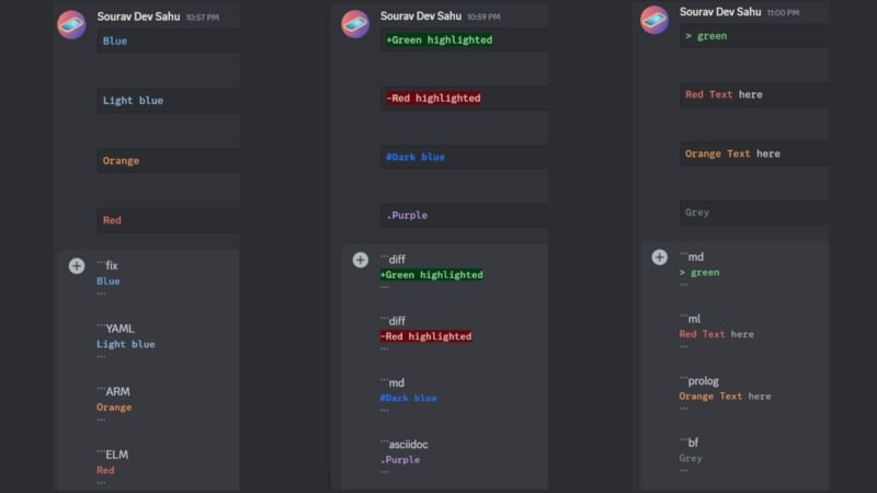 Discord의 기본 텍스트 색상은 흰색이기 때문에 앞서 언급한 텍스트 서식 스타일을 사용해서만 텍스트를 눈에 띄게 만들 수 있습니다. 물론 텍스트 색상만 바꿔도 충분하지만, 텍스트 색상을 바꾸는 것만큼은 아닙니다. 실제로 Discord는 텍스트 색상을 지원하는데, 이는 텍스트를 눈에 띄게 만드는 최고의 방법입니다. 공식적으로는 제공되지 않지만, 해결 방법이 있습니다.