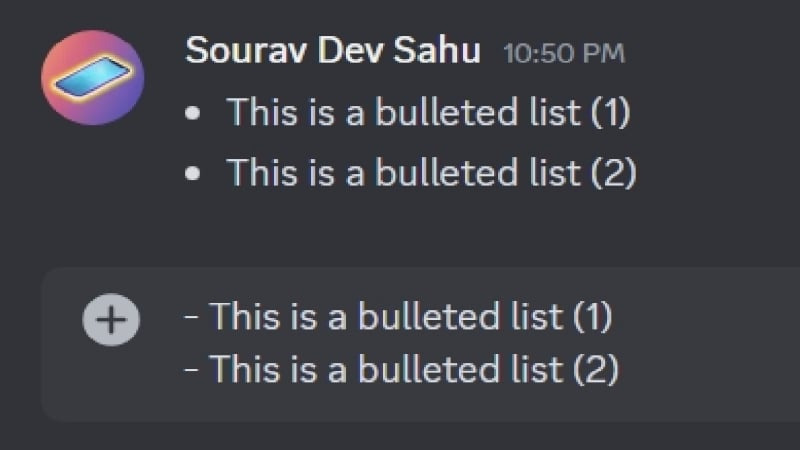 목록은 설명이 필요 없습니다. 여러 항목을 체계적으로 정리하는 데 사용됩니다. 읽고 이해하기 쉬울 뿐만 아니라 메시지를 훨씬 더 체계적으로 정리할 수 있습니다. 디스코드는 글머리 기호 형식의 목록 형식만 지원하지만, 각 텍스트 앞에 숫자를 입력하여 번호 매기기 목록으로 변환하면 목록 형식을 우회할 수 있습니다.