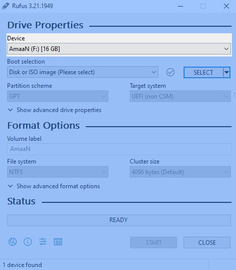 2. Rufus를 공식 웹사이트에서 다운로드하고 PC에서 실행하세요.
