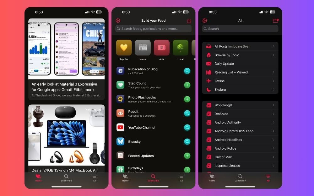 무제한으로 소스를 추가하고 뉴스와 업계 동향을 추적하며 최신 업데이트를 받아보세요. 또한, 기사를 북마크하여 나중에 읽을 수 있는 '나중에 읽기' 기능도 있습니다. 무료로 사용할 수 있으며 iPhone에서만 제공됩니다(Android에서는 Feedly를 사용해 보세요).