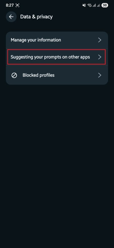 - 다른 앱에서 프롬프트 제안을 탭합니다.