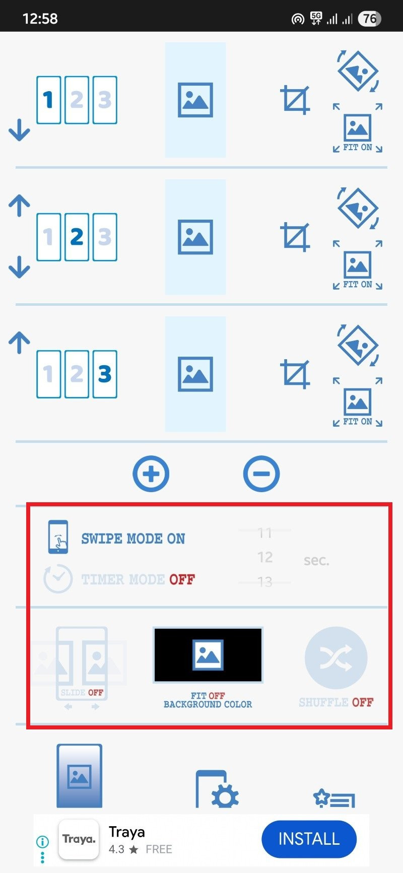 - 스와이프 모드 : 홈 화면에서 이미지를 스와이프할 수 있습니다.