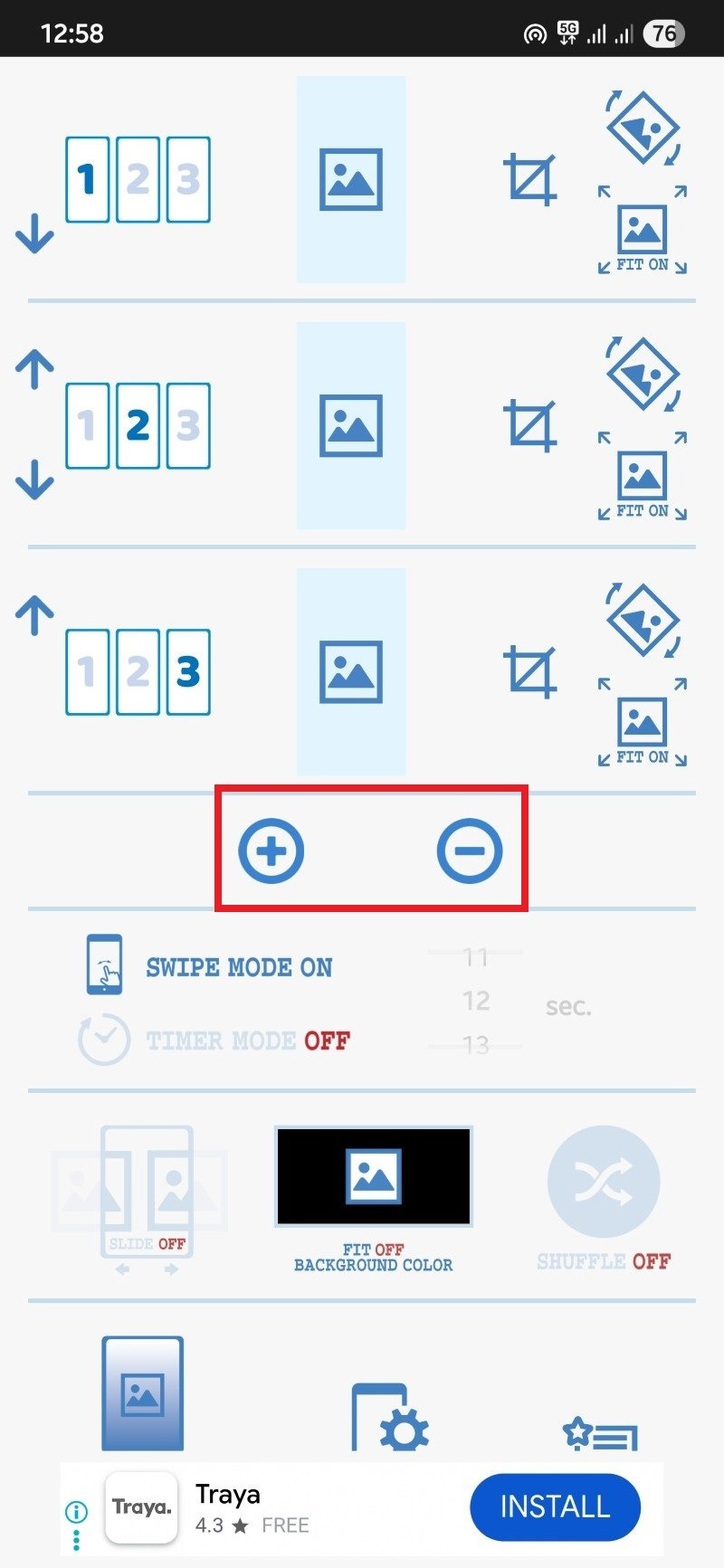 - 간단한 인터페이스가 표시됩니다. 기본적으로 앱은 세 개의 홈 화면을 선택합니다. + 또는 - 버튼을 탭하여 홈 화면을 추가하거나 삭제할 수 있습니다.