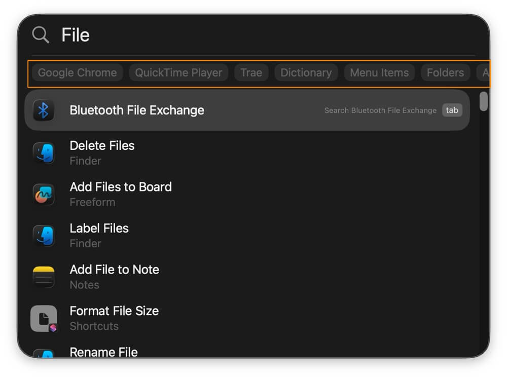 macOS 26에서는 Spotlight가 매우 유용한 업그레이드를 제공합니다. 이제 유용한 검색 필터를 사용하여 Spotlight에서 검색할 소스를 선택할 수 있습니다. 쿼리를 기반으로 파일, 시스템 설정, 텍스트, 메시지, 메모 등 특정 소스로 검색을 제한할 수 있습니다.