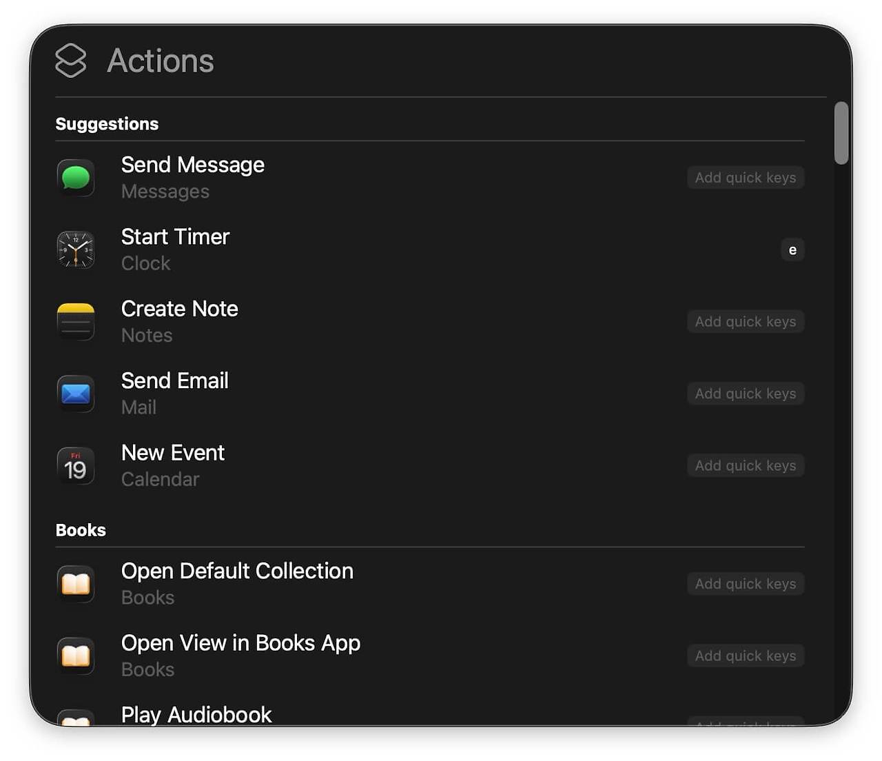 macOS 26의 Spotlight에 추가된 또 다른 유용한 기능은 Spotlight에서 바로 빠른 작업을 실행할 수 있다는 것입니다. 예를 들어 타이머를 바로 시작하고, 메시지를 보내고, 다른 빠른 작업과 함께, 가장 좋은 점은 Spotlight에서 바로 작업을 빠르게 수행할 수 있도록 타사 앱 작업도 지원한다는 것입니다. 각 Spotlight에 바로가기를 지정하여 필요할 때마다 빠르게 액세스할 수도 있습니다.
