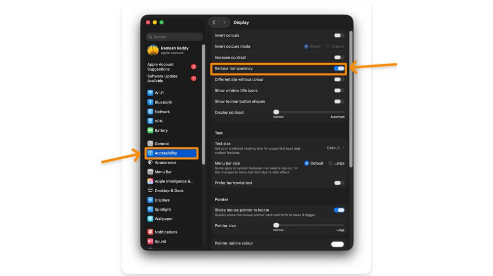 macOS에서 투명도를 줄이는 방법
