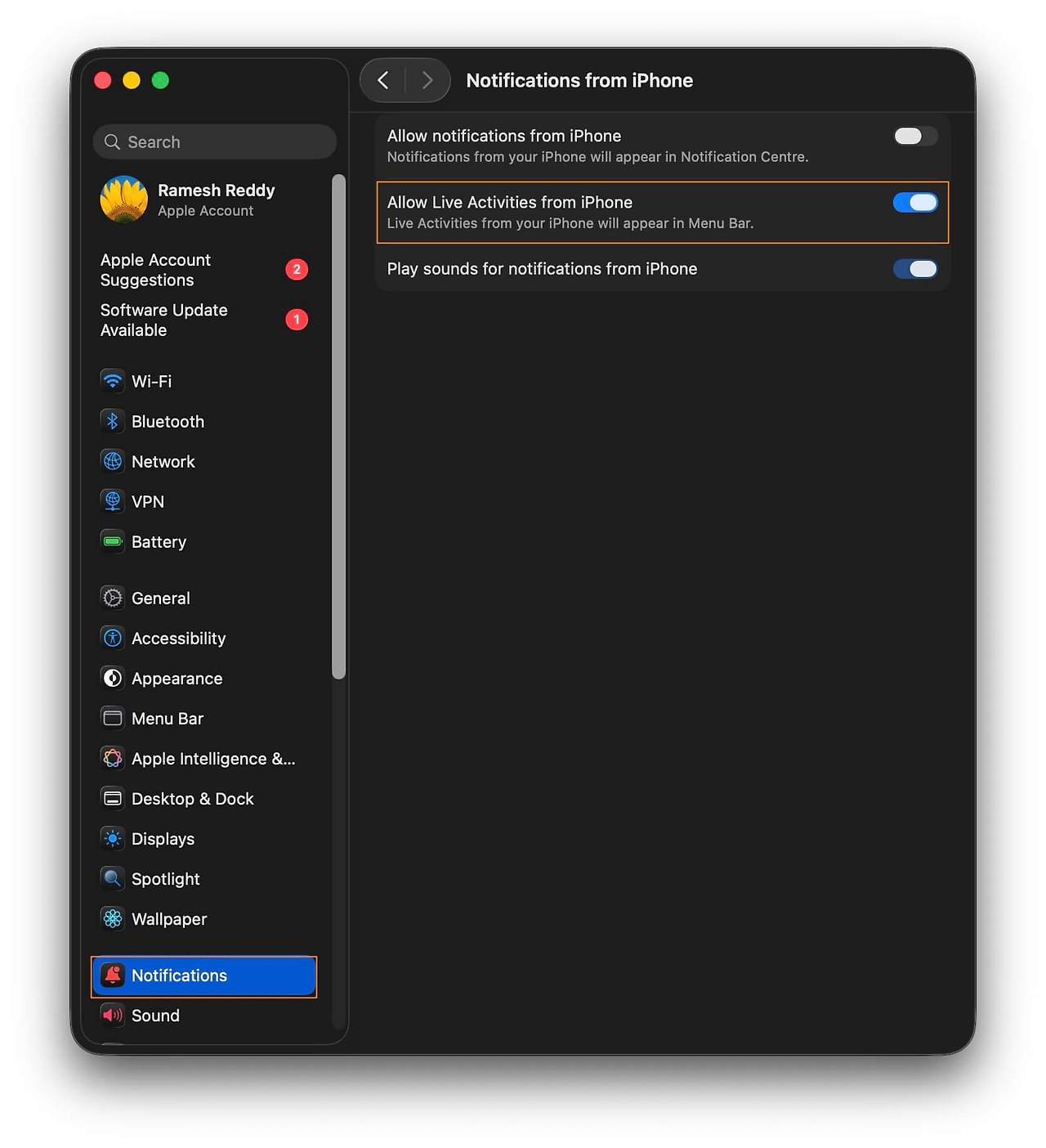 iPhone에서 실시간 활동을 사용하면 이제 Mac에서 바로 확인할 수 있습니다. 여기에는 Uber 차량 서비스, 항공편, 스포츠 경기 결과, 타이머 등 iPhone의 모든 실시간 활동이 포함되며, 최신 정보를 제공하기 위해 실시간으로 업데이트됩니다.