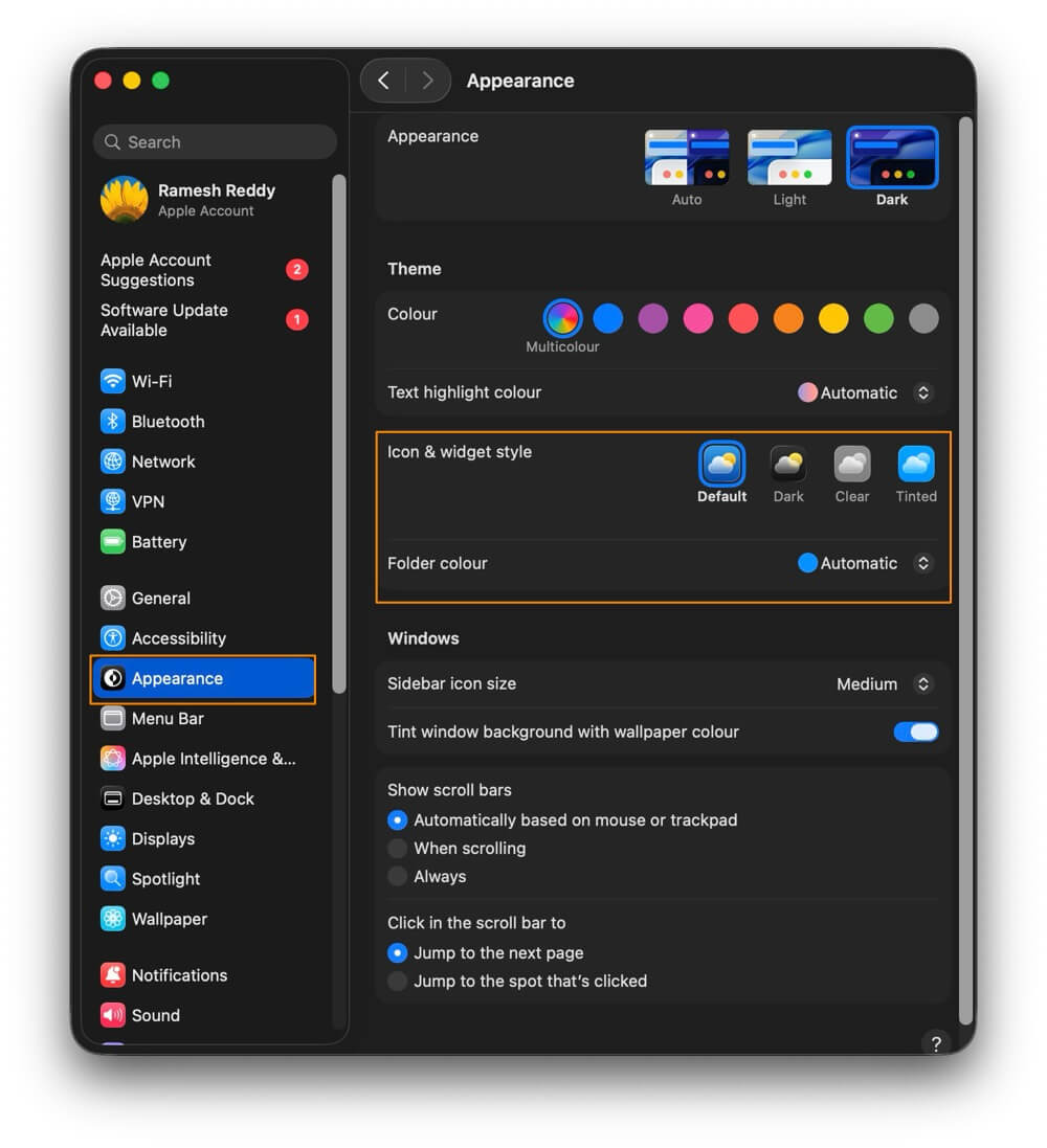 macOS 26에서 아이콘 스타일을 변경하는 방법: