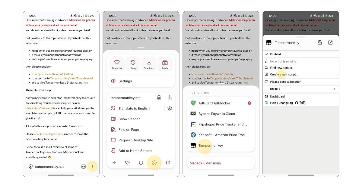 - 먼저, 스크립트 실행에 필요한 Tampermonkey Google Chrome 확장 프로그램을 설치하세요. 이 링크를 통해 다운로드할 수 있습니다 .