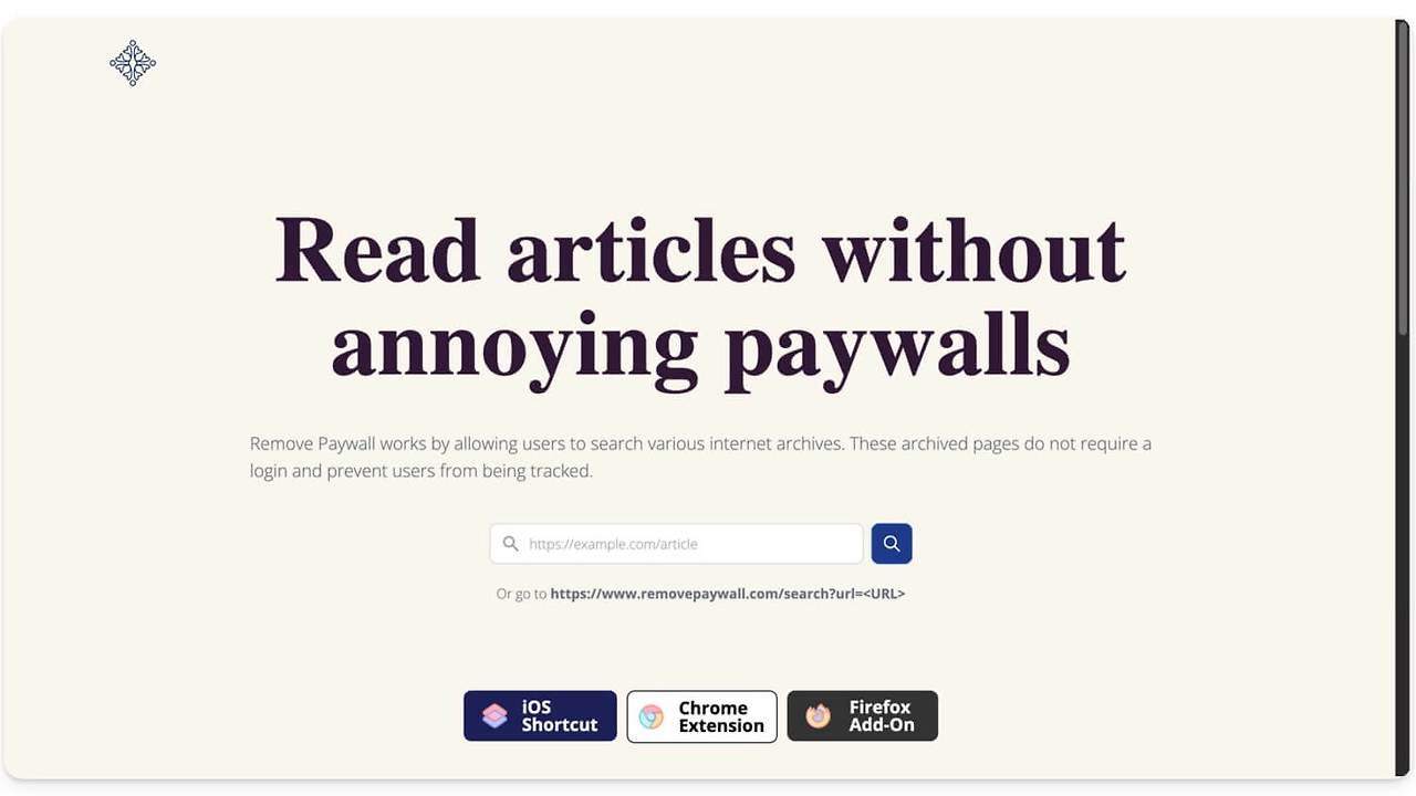 타사 유료 콘텐츠 차단 해제 웹사이트가 Freedium만큼 Medium 콘텐츠 차단 해제에 안정적이지는 않지만, 필요할 때 효과가 있는 경우도 있습니다. Removepaywall.com은 유용한 사이트 중 하나입니다. 이 사이트는 Archive.co에서 페이지를 가져와 표시하는 방법부터 간단한 JS 스크립트를 사용하여 유료 콘텐츠를 제거하는 방법까지 다양한 방법을 사용하여 사이트 차단을 해제합니다.