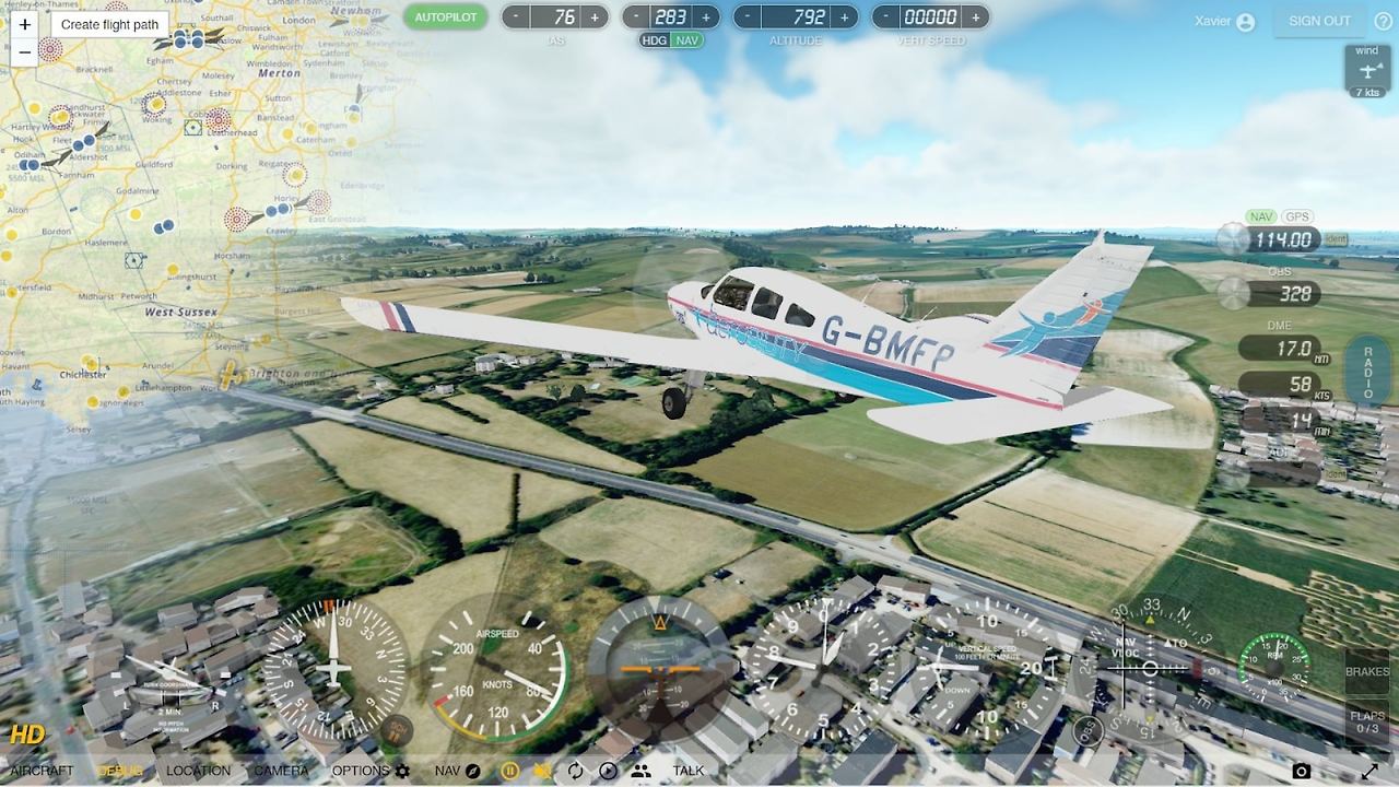 이러한 번거로움과 비용 부담 없이 geo-fs.com을 경험해 보세요. 2010년에 처음 출시된 이 웹사이트는 당시 구글 어스를 지도 기반으로 사용했습니다. 현재는 오픈 소스 플랫폼인 CesiumJS를 활용하여 가상 세계에서 나만의 비행기를 조종할 수 있도록 해줍니다.