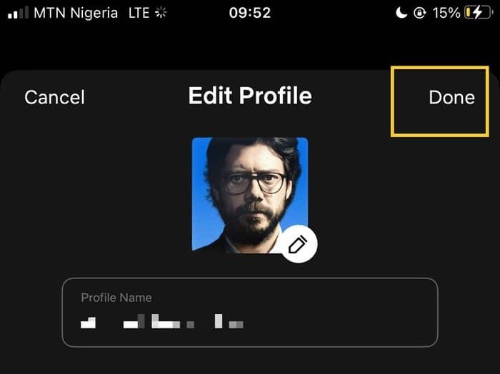 3. 이제 PFP를 변경할 프로필을 선택한 다음 프로필 편집 페이지에서 기존 아바타를 탭 합니다.