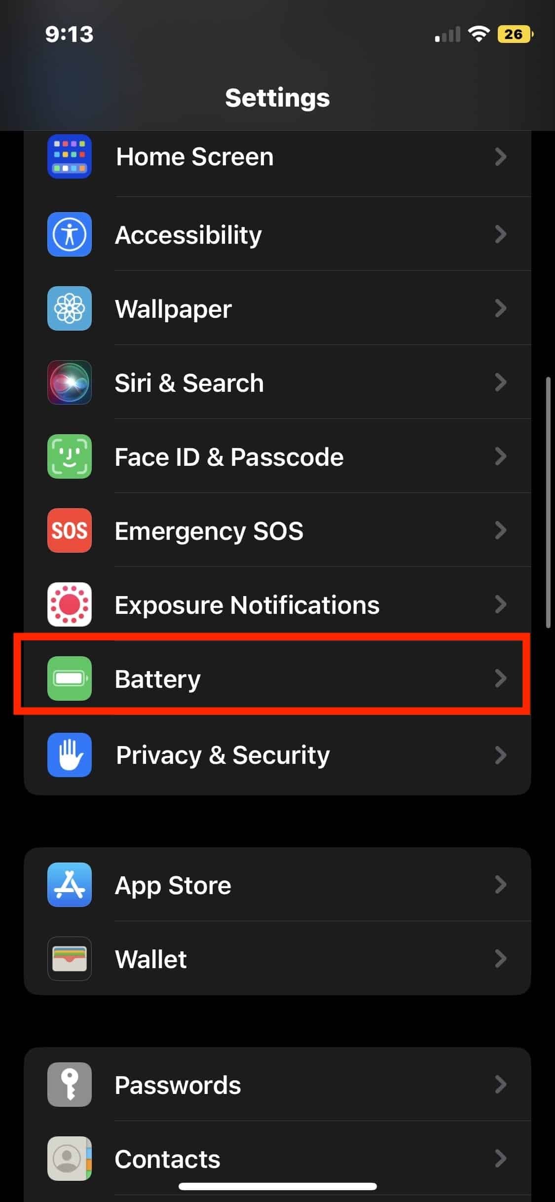 iPhone에서 저전력 모드를 활성화 또는 비활성화하는 가장 쉬운 방법은 설정 앱을 이용하는 것입니다. 그렇게 하려면 아래 단계를 따르십시오.