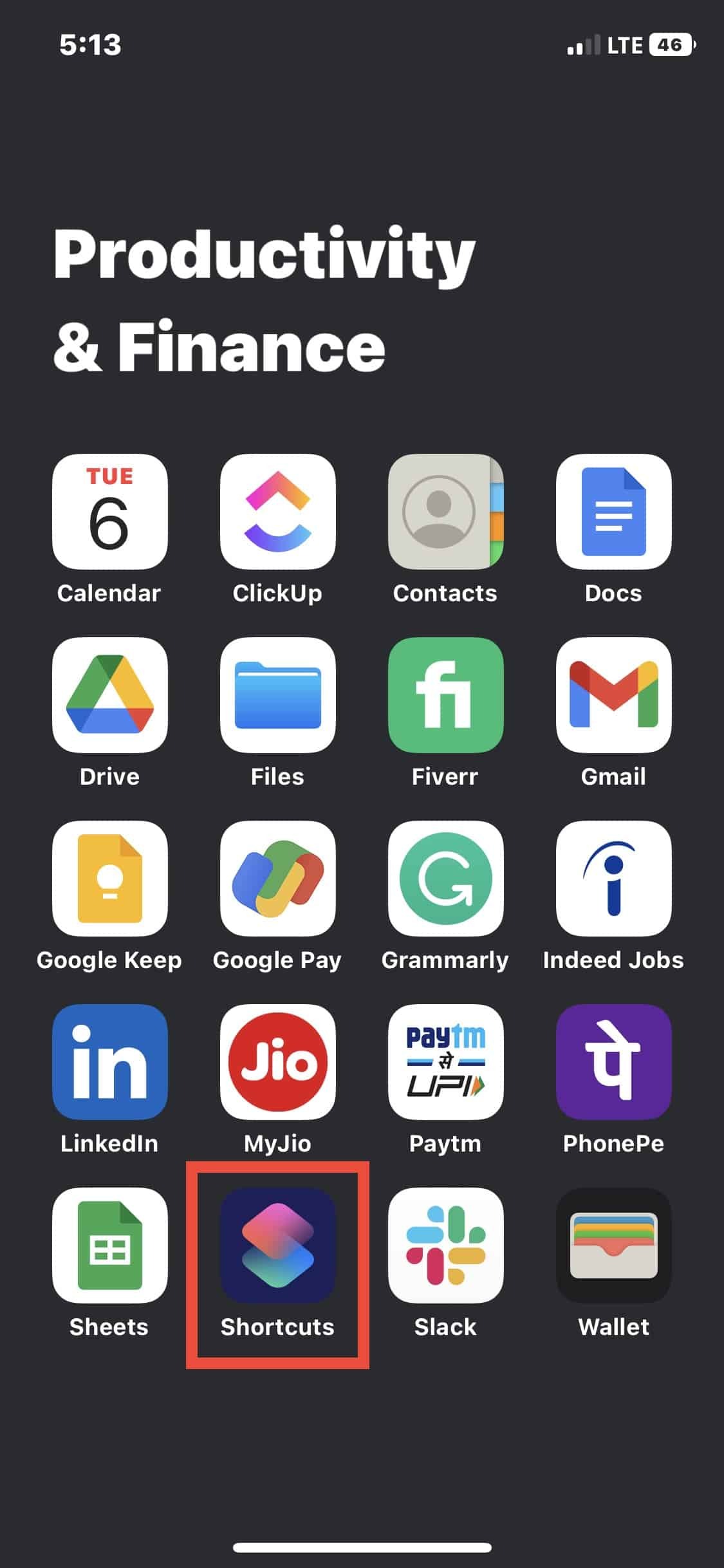 2. 앱 라이브러리 에서 바로가기 애플리케이션 을 엽니다 ,