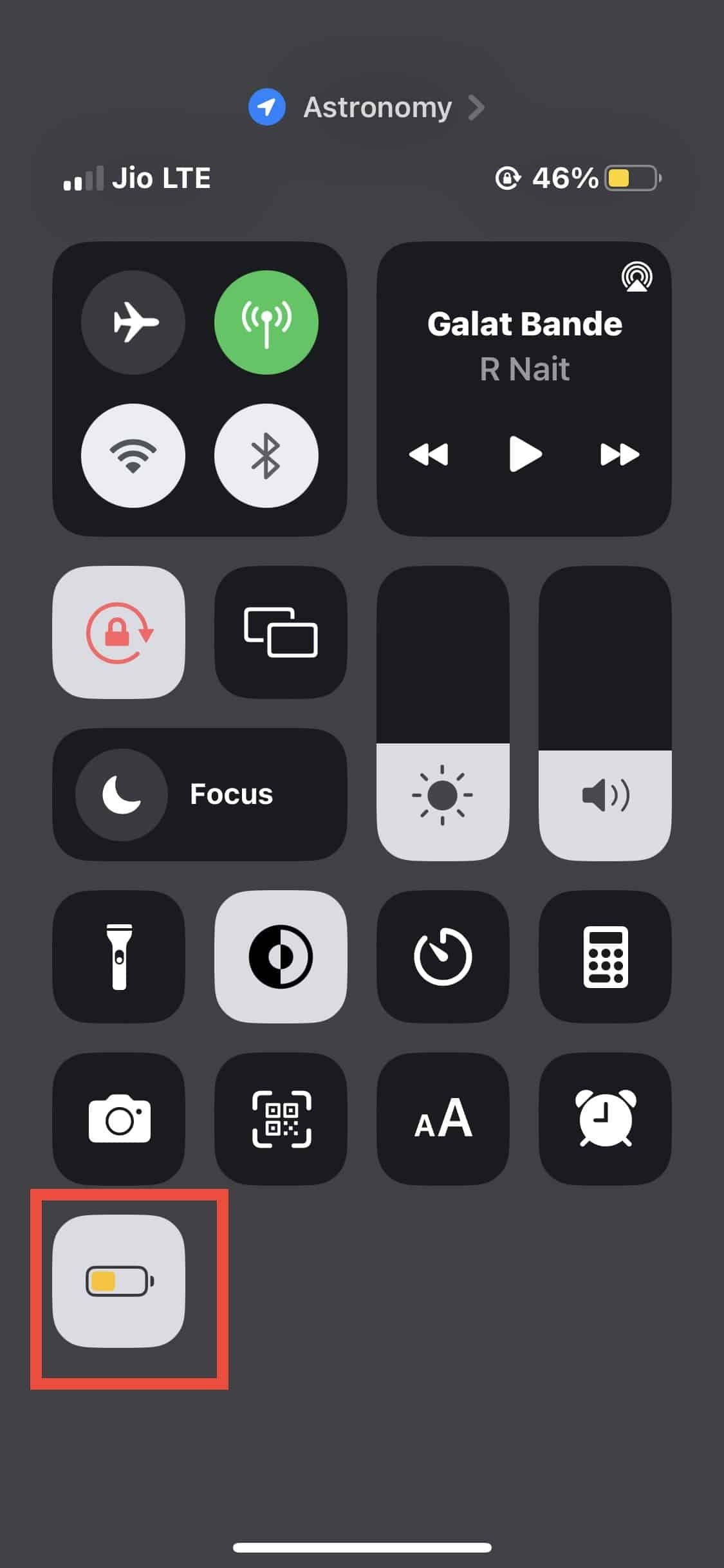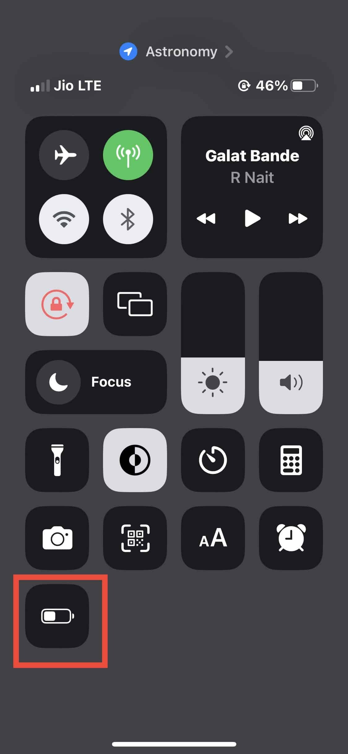 5. 이전 단계를 수행 하면 제어 센터 에 저전력 모드 가 나타납니다,
