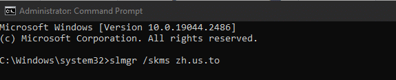 4단계: 입력해야 하는 다음 명령은 slmgr /skms zh.us.to 이며 평소와 같이 명령을 입력한 후 Enter 키를 누릅니다.